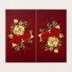 La composición de dos rosas rojas pintadas artistalmente y un rosa dorado, decorado con oro, hojas de joyas sobre fondo texturado.