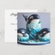 TARTA DE CUMPLEAÑOS DE NIÑOS CON TEMA DE ORCA BLANCA Y NEGRA EN LA PARTE DELANTERA DE LA TARJETA. COPIA COMPLETAMENTE EDITABLE EN LA PARTE TRASERA.