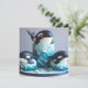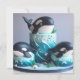 TARJETA TRES TORTA DE CUMPLEAÑOS DE ORCA BLANCA Y NEGRA