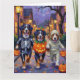 Los adorables perros montañeses de Bernese vestidos con juguetones disfraces de Halloween llevan baldes de calabaza mientras truco o truco bajo el cielo iluminado por la luna. Este diseño festivo destaca el abrigo tricolor de la raza, los ojos suaves y la personalidad afectuosa, que captan perfectamente la atmósfera espeluznante y divertida de la noche de Halloween. Una alentadora celebración para los amantes del perro y los hinchas de Halloween por igual.