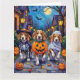 Tarjeta Trick o tratamiento de perros Beagle en disfraz de