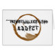 No hay rehabilitación para un adicto al café: estás manteniendo Trimetilxantina, el nombre de química sofisticada de la cafeína. El diseño tiene texto de nervios y una mancha de café.