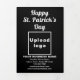 Tarjeta triple negra para el día de San Patricio que puedes personalizar subiendo las imágenes de tus productos o servicios, el logotipo de tu negocio, escribiendo tu nombre de negocio, dirección, número de teléfono, correo electrónico y sitio web. Personalizar y dáselo a tus clientes o clientes para que les saluden este día de San Patricio. Tarjeta triple como material de marketing también para promocionar sus productos o servicios. Por favor, compruebe la apariencia de todos los lados después de subir imágenes y teclear textos. Si la apariencia le resulta agradable, puede realizar su pedido ahora. Si necesita cambiar el tamaño y la posición de las imágenes y los textos para que encajen en esta tarjeta triplemente, por favor, ajuste en la herramienta de diseño. También puede cambiar el color de fondo, el color de fuente y el estilo de fuente en la herramienta de diseño. ¡Feliz Día de San Patricio! Le deseamos la mejor de las suertes, alegría y más ventas de esta fiesta.