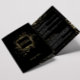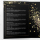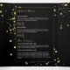 Tarjeta Tríptica Confetti de oro falso dispersado en broche negro