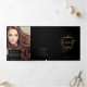 Una divertida salpicadura de falsos puntos metálicos de confeti de oro hace una declaración de moda en este folleto tríplio de personalizable. Su nombre o nombre comercial está diseñado de forma minimalista en toda la cubierta frontal dentro de un marco de oro falso. Actualice el texto del personalizable para que se ajuste a su marca, y personalice los detalles de todo el folleto para su propio uso. Estos folletos 5x7 son el tamaño perfecto para mostrar las listas de precios y el menú de servicios, o para describir la línea de productos. Una gran pieza de marketing para repartir a los clientes potenciales para que introduzcan rápidamente su negocio. Póngase en contacto con el diseñador para obtener ayuda sobre la composición tipográfica o las variaciones de diseño. Arte y diseño © 1201AM Design Studio | www.1201am.com