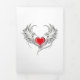 Corazón rojo pintado de forma artística con alas de ángel gris, decorado con un contorno suave negro.