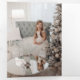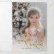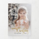 Sencillo y elegante saludo de vacaciones con tu foto con un opaco filtro blanco, falso personalizado purpurina de oro, guión de caligrafía de Feliz Navidad y campos de texto editables.