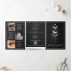 Promociona tus ofertas con elegancia y mística usando este folleto de servicios de lectura espiritual. Diseñado para profesionales holísticos, trabajadores de la energía o lectores de tarot, esta disposición triple proporciona espacio para contenido personalizado, imágenes, información de contacto y una lista detallada de servicios. El elegante fondo negro contrasta maravillosamente con las obras de arte de la fase de la luna suave y los delicados acentos celestes, captando la atención mientras refleja su estética metafísica. Cada panel está cuidadosamente organizado, incluyendo espacio para una biografía, categorías de servicios y precios. El panel frontal incluye un nombre y un título, mientras que los paneles interior y posterior permiten imágenes de cristal, asas sociales y códigos QR para guiar a los clientes directamente a su sitio o plataforma de reserva. Ya sea que estés montando en una feria metafísica, enviando promociones por correo o llenando tu boutique espiritual, este volante es una manera impactante de presentar tu negocio. Personalizable fácil para curanderos de Reiki, psíquicos, lectores intuitivos o expertos en terapia de cristal. Profesionalmente pulido y visualmente alineado con la industria espiritual moderna, este volante es más que promocional —es una extensión de tu marca sagrada.