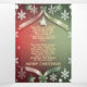This festive Christmas frame features elegant white snowflakes, soft hanging stars, and flowing ribbons over a warm red-green gradient background.