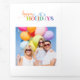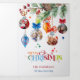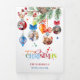 This is a bright, colorful and unique holiday greeting featuring four festive Christmas ornament-shaped photo templates hanging from a watercolor pine branch. Also featured is a cheery multicolored Merry Christmas text graphic in a custom decorative font. Includes editable text fields. The panels feature additional text fields, complementary Happy Holidays text graphic and floral and three additional photo templates.