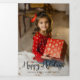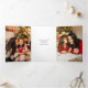Mensaje festivo y moderno de "Felices Fiestas" en escritura caligráfica con elegantes toques, campo de texto y filtro opaco opcional para tu apreciada foto de vacaciones. Los paneles interiores incluyen campos de texto editables adicionales y plantillas de fotos.