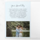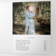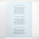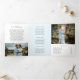 Folleto del tríplio fotográfico moderno con una foto en la parte delantera con el nombre de su negocio arriba y el título del folleto debajo, sobre un fondo blanco. El panel posterior externo tiene la información de contacto con el encabezado en un tipo de letra manuscrito elegante. El panel de plegado interior tiene una plantilla para información junto con una foto en la parte inferior sobre un fondo azul pastel. El interior tiene una imagen en los paneles izquierdo y derecho junto con una plantilla para obtener información a la izquierda, sus paquetes en el medio y una lista de precios a la carta en el panel derecho. Este folleto profesional triplicado es perfecto para un fotógrafo boda.
