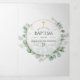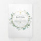 Invitación de dedicación, bautizo o bautismo de bosque salvaje con eucalipto y marco geométrico dorado diseñada para ser personalizada rápida y fácilmente según los detalles de su evento. Se recomiendan fotos en formato vertical.