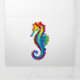 Arco de arcoiris, caballito de mar poligonal sobre fondo blanco. Tatuaje brillante.