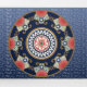 Hermosa interpretación de Mah Jongg uno de los puntos combinados con tela china, cerámica y estampados de cloisonné. Una tarjeta con espacio para el mensaje y una decoración.