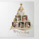 Tarjeta Tríptica Moderna Faux Gold Christmas Tree Family Multiphoto