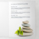 Este diseño de tríplio sereno presenta formas de piedra zen abstracta en tonos azules y grises suaves apilados para representar el equilibrio y la armonía. Creado para centros de bienestar, masajistas, reiki, acupuntores, spas, salones y más. Actualice el texto del personalizable para que se ajuste a su marca y sustituya las fotos de stock en todo el folleto por sus propias imágenes. Estos folletos 5x7 son el tamaño perfecto para mostrar las listas de precios y el menú de servicios, o para describir la línea de productos. Una gran pieza de marketing para repartir a los clientes potenciales para que introduzcan rápidamente su negocio. Póngase en contacto con el diseñador para obtener ayuda sobre la composición tipográfica o las variaciones de diseño. Arte y diseño © 1201AM Design Studio | www.1201am.com