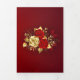 La composición de dos rosas rojas pintadas artistalmente y un rosa dorado, decorado con oro, hojas de joyas sobre fondo texturado.