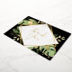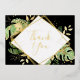 Esta elegante carta de agradecimiento de temática tropical presenta un follaje exótico con acentos dorados sobre un fondo negro. Un marco geométrico moderno de Relieve metalizado dorado resalta el texto del Relieve metalizado dorado. Las salpicaduras de Relieve metalizado dorado acentúan el diseño botánico y le aportan un toque sofisticado de capricho. Esta tarjeta de agradecimiento es el complemento perfecto para un boda tropical temático, una ducha de bebé o cualquier otra ocasión.
