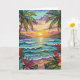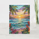 Pretty tropical anniversary birthday card. A cute coastal themed poem about love inside can be personalized or left alone.. Gorgeous ai impasto oil painting style illustration of the blue ocean, a sandy beach surrounded by palm trees at sunset. Inside is a cute crab and sea glass.