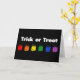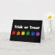 Este bonito diseño de Halloween presenta una hilera de bolsos de truco o de regalo con colores arcoiris.