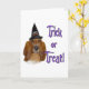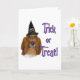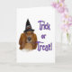 ¿Será trucos o invitaciones este Halloween? Nuestro diseño del día de fiesta tiene su raza preferida del perro, Basset Hound, llevando el gorra de una bruja. ¡Añada un poco "fórmula de prestidigitador" a todos santificó Eve este año!