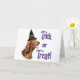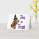 ¿Será trucos o invitaciones este Halloween? Nuestro diseño del día de fiesta tiene su raza preferida del perro, Irish Setter, llevando el gorra de una bruja. ¡Añada un poco "fórmula de prestidigitador" a todos santificó Eve este año!