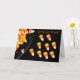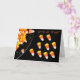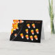 Una tarjeta fotográfica de Halloween con Kandy Korn sobre un fondo negro.