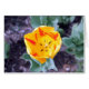 Esta es una imagen de un tulipán amarillo y rojo en una tarjeta en blanco.