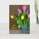 Tarjeta tulipanes rosados y amarillos en el cubo Nombre Dí