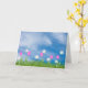 Tarjeta tulipanes y margaritas en el césped pensando en ti