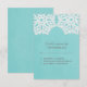 Tarjeta de respuesta Boda de encaje elegante, sencilla y sofisticada, con un motivo doily de encaje blanco sobre un fondo de papel de imitación turquesa. Esta tarjeta RSVP, clásica y elegante, es perfecta para un boda rústico. Fácil de personalizar con los detalles de su boda. Haga clic en "Personalizar" para encontrar más opciones de personalización.