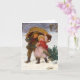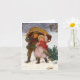 Vintage illustration of a boy and a girl joyfully dragging a holly tree through the winter forest while carrying a basket over their head to protect themselves from the falling snow. Nostalgic oil painting by English artist Frederick Morgan.