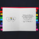Cuando hago un regalo me gusta acompañarlo de una tarjeta con unas palabras dedicadas en especial a la persona!! Los colores son nítidos igual que en la presentación, me ha sorprendido la calidad del cartón, es mejor de lo que pensaba!!!