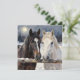 Tarjeta Two Horses on a Snowy Farm | Blank