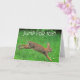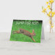 Tarjeta de felicitación por última quimioterapia con un conejito lindo saltando de alegría. ¡Ciertamente una razón para celebrar! Personaliza con tu propio mensaje especial.