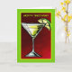 Feliz Cumpleaños escrito en una divertida fuente de color verde lima. Un dibujo de una copa de martini en un grueso contorno negro esbozado, coloreado en colores verde lima y amarillo. Una rodaja de lima descansa en el borde de la copa. Rodeado por un doble borde de amarillo y verde lima. El fondo es un estilo grunge rojo claro y oscuro. El interior de la tarjeta tiene un saludo de cumpleaños personalizable.
