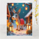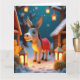 Un asno pacífico con una manta de albarda roja se alza entre farolillos brillantes y estrellas estables en este cálido diseño de arte de papel 3D. Perfecto para las tarjetas de Navidad inspiradas en la actividad.