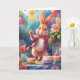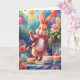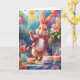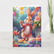Tarjeta Un conejito lindo, sonriente celebrando en la mesa