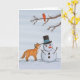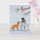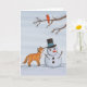 Un cardenal posado en una rama de un árbol observa mientras un zorro investiga a un muñeco de nieve dejado atrás por algunos niños en una fría mañana de invierno.