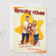 Una bonita tarjeta de vibraciones vintage para la temporada de Halloween. Pon tu foto en su lugar y tu nombre. También puede cambiar el texto como desee. Patrón de fantasmas en la parte posterior de la tarjeta. ¡Feliz Halloween! 🎃 👻
