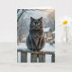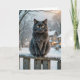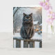 Tarjeta Un gato negro de cumpleaños en una cerca nevada
