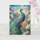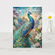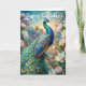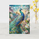 Un pavo real entre flores. Adecuado para una tarjeta de cumpleaños para cualquiera