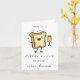 Esta tarjeta divertida que incluye el texto "Un pequeño brindis por tu nuevo hogar" y una ilustración adorable de una tostada bebiendo champán es perfecta para enviar buenos deseos a alguien que aprecia el humor y/o el arte de dibujos kawaii con motivo de la inauguración de su casa. Como el texto se puede cambiar, puedes usar la tarjeta para otras ocasiones. Haz clic en "Personaliza esta plantilla" para personalizar el mensaje y los nombres. Si deseas cambiar los colores de los textos, ve a "Editar con la herramienta de diseño".
