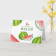 Envíe algunos jugosos deseos de cumpleaños con esta adorable "One in a Melon" primera tarjeta de felicitación de cumpleaños! Con vibrantes ilustraciones de sandía y juguetona tipografía, esta tarjeta plegable es perfecta para celebrar el gran día de un niño. El mensaje interno es totalmente personalizable, por lo que puede agregar un nombre, un saludo de cumpleaños o una nota personal. Una manera divertida y reflexiva de hacer aún más dulce el primer cumpleaños de un bebé, perfecta para emparejarse con regalos o artículos de fiesta temáticos.