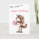 Tarjeta Un unicornio lindo comiendo algodón rosa cumpleaño