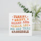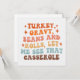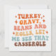 Este diseño juguetón y vibrante es perfecto para la temporada de otoño, especialmente el Día de Acción de Gracias, y presenta la frase divertida y pegadiza "Pavo, salsa, frijoles y panecillos, déjame ver esa cazuela". El texto está organizado en un diseño apilado, con cada línea utilizando un color diferente de una paleta cálida inspirada en el otoño. Los colores van desde naranjas y marrones intensos hasta rosas suaves, azules y amarillos, reflejando la atmósfera acogedora y festiva de las reuniones de otoño. La fuente gruesa y retro añade un toque nostálgico y caprichoso al diseño, mientras que los destellos con forma de estrellas dispersos por todas partes mejoran la vibra de celebración.