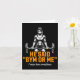 Tarjeta Una mujer divertida que levantó pesas para constru