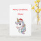 Envíen vítores de vacaciones con este adorable unicornio usando un sombrero de Santa y campanas de Navidades en su forma. Perfecto para los niños, los amantes del unicornio o cualquier persona que disfrute de unos saludos mágicos y festivos.