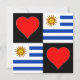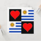 Cute square Uruguay tarjetas de felicitación para los orgullosos uruguayos. Con el singular patrón de cuadros hechos de corazones rojos y la bandera nacional de Uruguay. ¡Funciona genial como invitación a celebraciones patrióticas uruguayas, llegando a amigos y familiares en Uruguay, o para proyectos de artesanía patriótica!